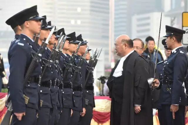 图为终审法院首席法官马道立检阅香港警察仪仗队