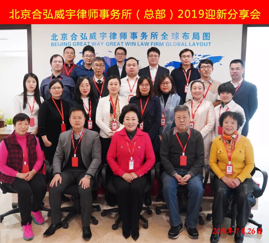 2019年11月26日上午,北京合弘威宇律师事务所迎新分享会在北京总部会议室隆重召开,北京合弘威宇律师事务所主任张巍、副主任颜勇、律所资政李玉伟、各部门部长、副部长及新入职律师参加了分享会。