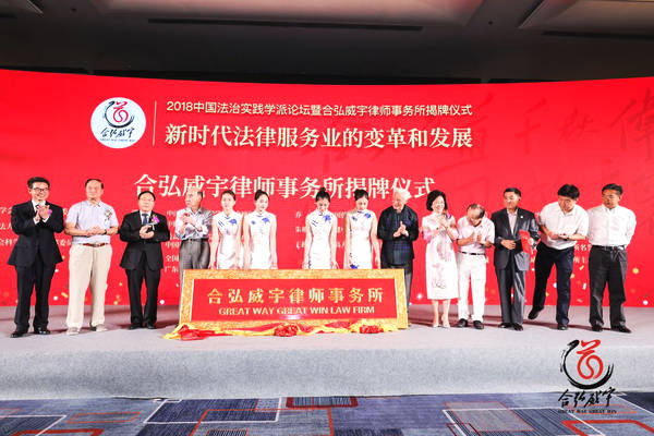 2018年8月18日下午,北京合弘威宇律师事务所揭牌仪式在北京举行,同时还举行了中国法治实践学派论坛,此次学术论坛主题为“新时代法律服务业的变革和发展”。